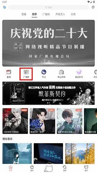 1、从本站下载M站app,安装后进入首页,找(zhao)到(dao)【广播剧】模块。