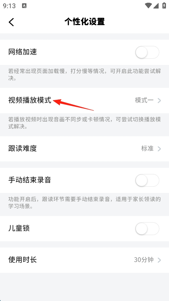 4、点(dian)击“视频播放模式”。