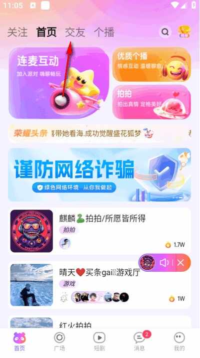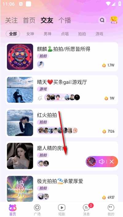1、打开软件进入首页,点击上方交友