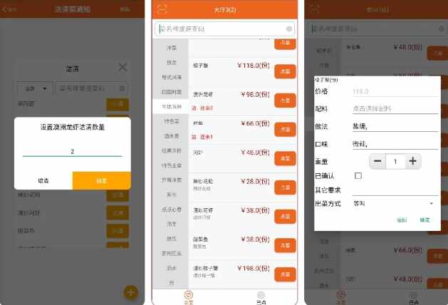 3、手(shou)机(ji)安装么么点菜客户端,服务员通過手(shou)机(ji)点菜、催菜,划菜等功能。