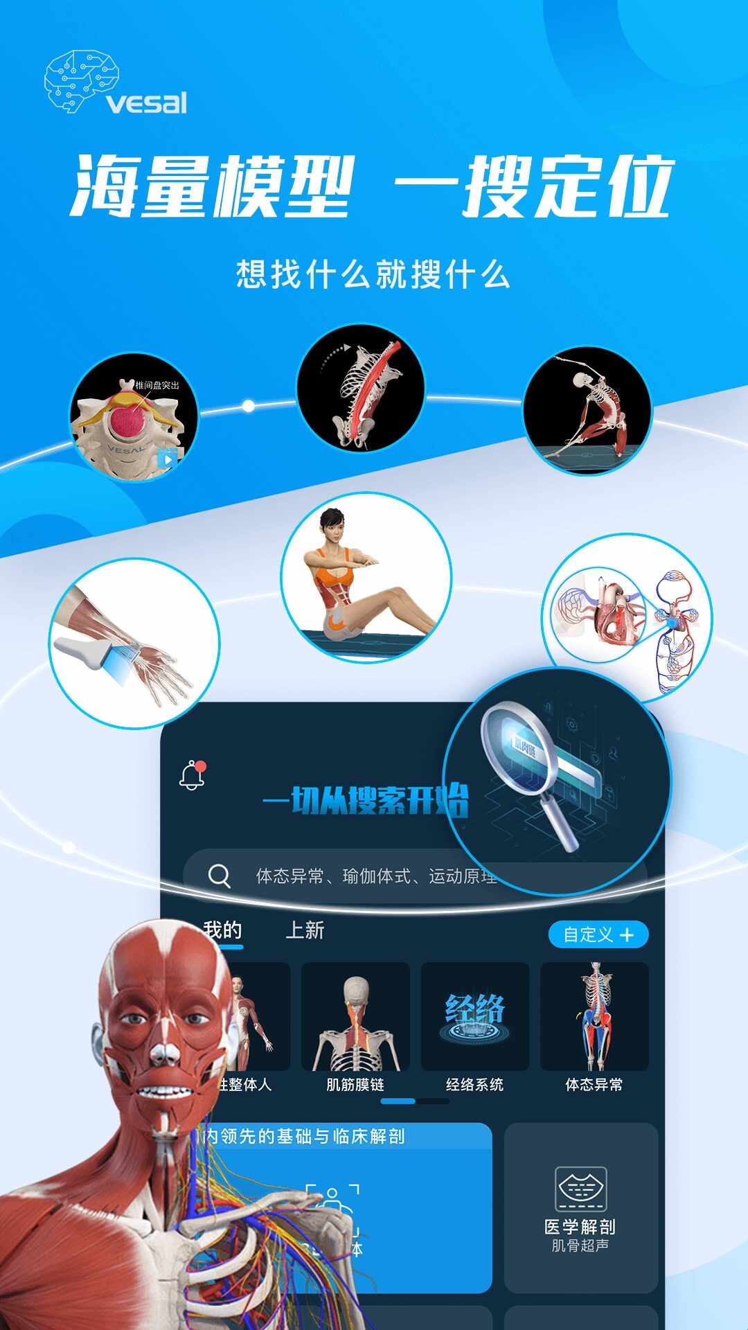 7、一(yi)键(jian)搜索人体解剖结构,模(mo)型动(dong)画,经络穴位,随身康复医学百科宝典。