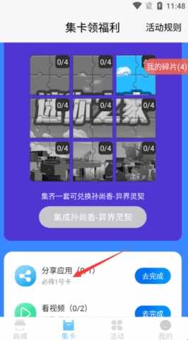 3、点开集卡,用户可以通过集卡免费领取爆款皮肤。