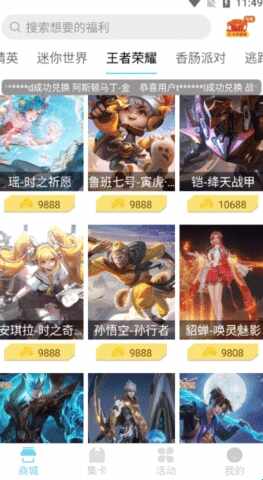 2、在商城这里,用户可以通过迷你点兑换稀有皮肤,支持和平精英、玩着荣耀(yao)、英雄联盟、迷你世界(world)、摩尔庄园、奥特曼传奇英雄等多种慹閄游戏。