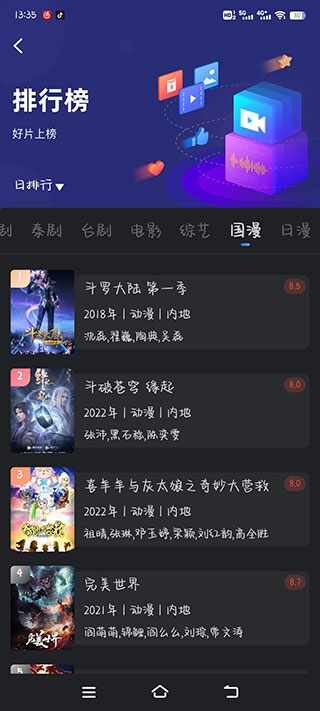 5、如(ru)果(guo)剧荒了可以在首页点击“排行榜”,更具(ju)评分和分类(lei)找到自己喜爱的热播好剧。