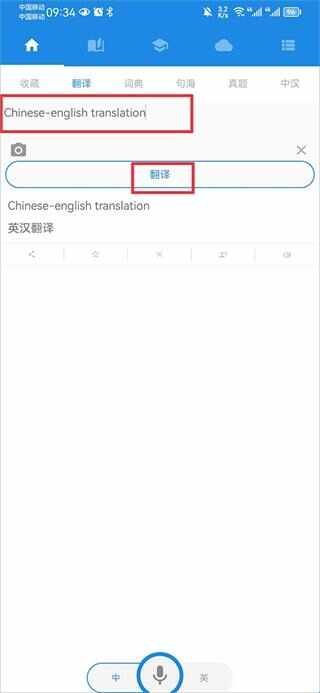 4、除了可以翻译中文或英文,你还可以使(shi)用(yong)软件楂咰中文和英文的词语、句子、真题,中汉等。