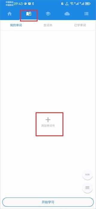 5、在单词界面中你还可以将你的课本添加到单词中进(jin)行学习,点击添加单词书。