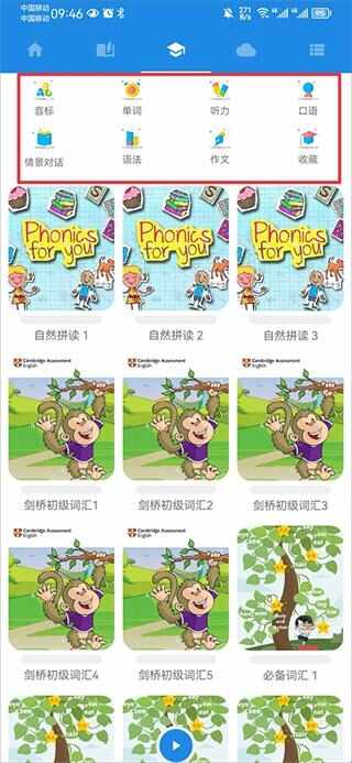 8、同时用户(yonghu)还可以在这里学习到各式音标、单词、听力、口语、情景对话、语法、作文等知识,可以全方位的帮助(bangzhu)您提高英语水平。