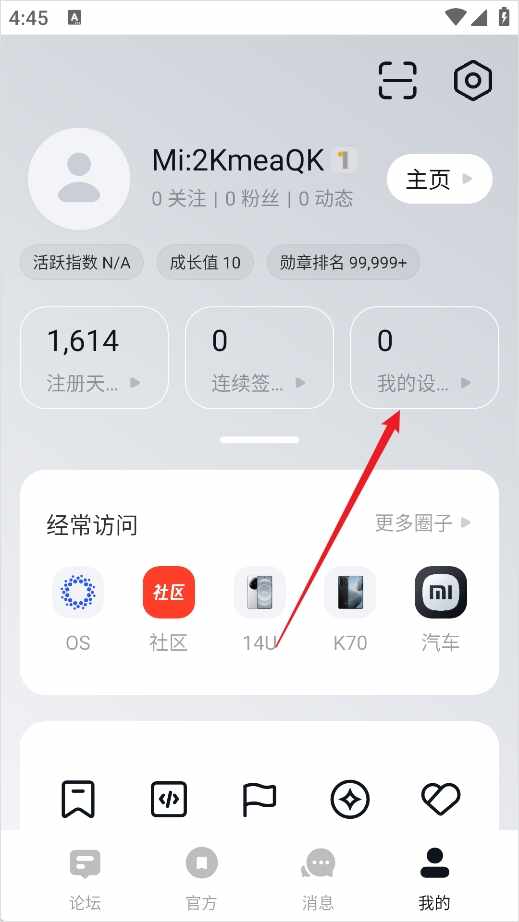 1、打开(kai)(Open)小米社区,点击右下角的“我的”;
