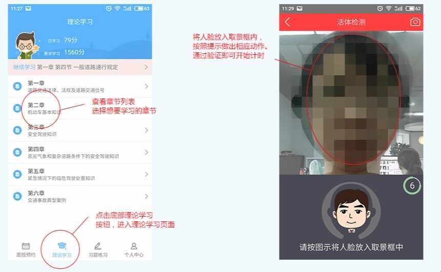 如下图所示,点击理论学习。人像验证通过之后,学员可艮琚时钟00:00:00是否计时来判断系统是否记录(lu)学时。(注意:人像验证通过之后,计时器才会走)