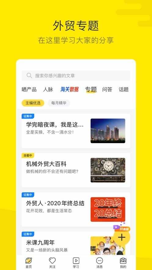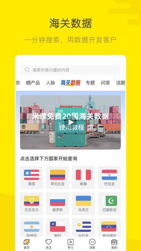 米课圈(米课圈有用吗)在这里可以一起聊外贸,米课圈米课圈怎么样能和全国各地的外贸人一起交流。还有海量的海关数据,用户可以随时随地的搜索。还有超多的外贸专题,喜欢就一起来看看吧。
