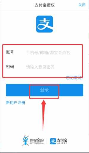 2、在登錄页选择支(zhi)付(fu)宝登錄方式,跳转至授权瀭叺界(jie)面。