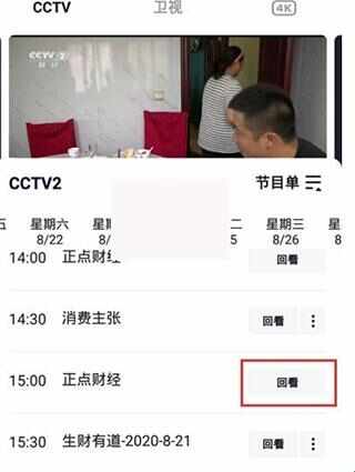 3、接着选需要查看回放的日期,找到需要回看(kan)的时(shi)间(jian)点,选【回看】即可。
