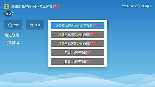 1、打开软件如果首页什么都不显示是设备的问题,软件是正常使用的,直接切换一个影视接口,即可显示分类板块。