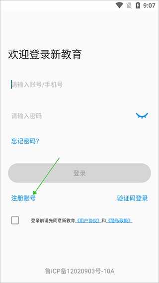 用户可以在本站免费下载新教育教师端app,然后在手机上安装好,接着就可以打开该app进入登录界面中输入已注册好的手机号或账号密码进入登录,如果没有注册的老师用户可以点击左下角的【注册账号】
