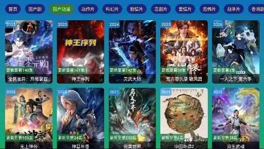 2.点击上方的【国产动漫】,进入对应的列表;