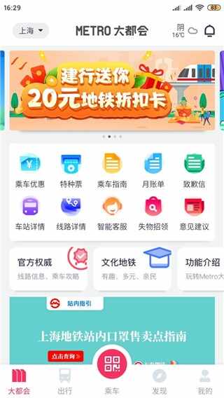 1、在本站下载(xiazai)并安(an)装(zhuang)上海地铁大都会app官方版,进入软件首页,可以查看各项功能