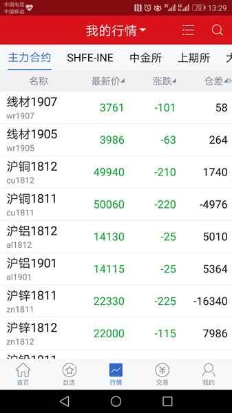 有色金属、贵金属、能源、煤炭化工、农产品、股票指数等版块期货期权行情,全球外汇行情、个股行情等