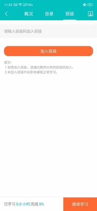 温馨提示:学生在未加入班级情况下(qingkuangxia),也可自己开展(kaizhan)学习,即使后期再加入班级,学习记(ji)录也将保存,是否(shifou)加入班级请遵照任课教师的要求。