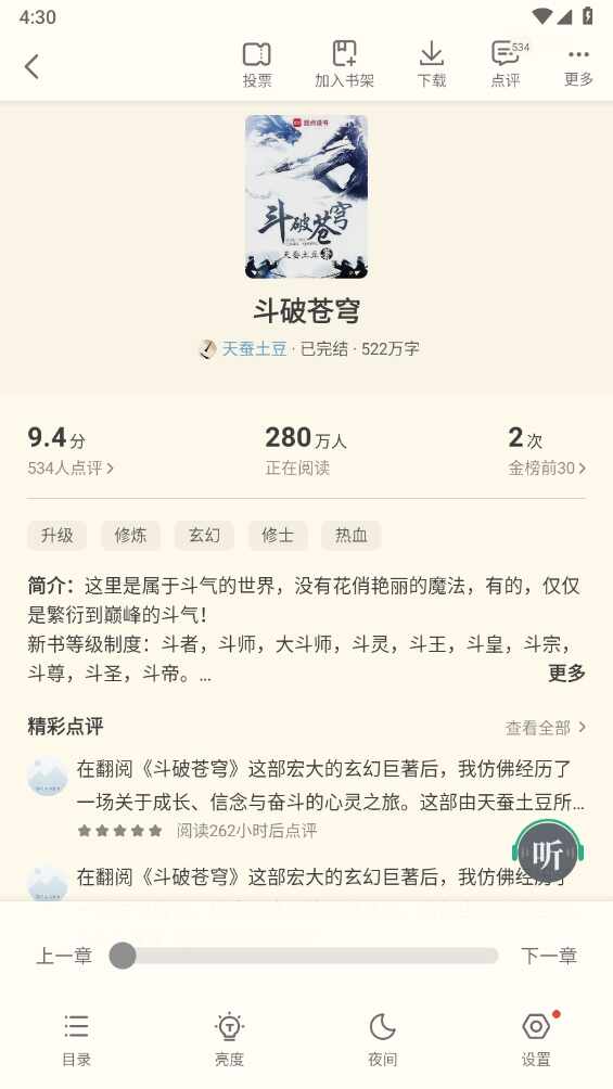 2、个性阅读领略:如字体大小、翻页模式等都可以自(zi)由调节,更加符合你的(de)阅读习惯。