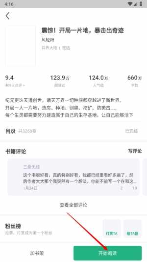 2、进(jin)入小说详情页,点击"开(kai)始(shi)阅读"。