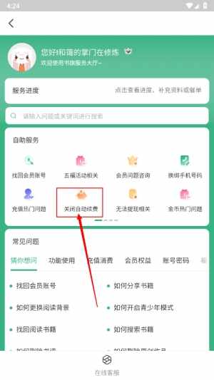 3、如图所示,点击"取消关闭续费"进(jin)入。