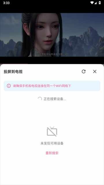 3、搜索电视设备,点击一(yi)键连接即可投屏成功。