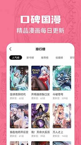 3、在主界面上,我们能够看到一(yi)系(xi)列(lie)最新超热的漫画作品,用户can选择自己(oneself)喜欢的漫画进行(jinxing)阅读。