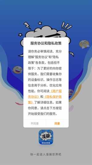 1、在本站下载安装漫画谷app免费下载最新版本,打开之后便能够看到相应的界面,我们仔细阅读协议、隐私,如果没有问题直接同意即可。