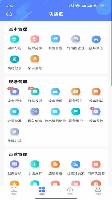 使用“数据统计”查看各类报表,分析运行效率与问题。