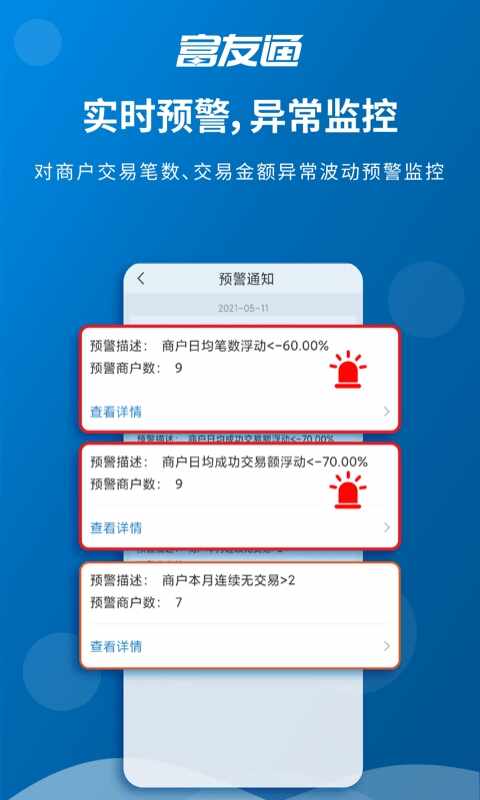 对重点关注商户实时查看商户交易笔数及交易金额。