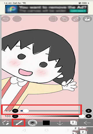 4、接着用画笔,小编选的是软蘸笔4.9粗细,将小丸子的轮廓描出来。