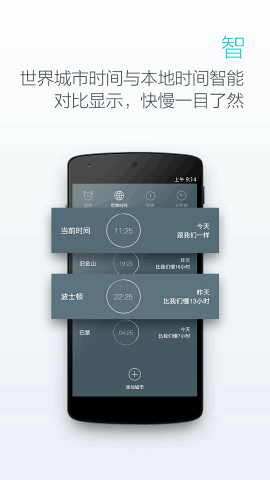 5、智:世界城市时间与本(ben)地时间智能对比显示,快慢一目了然。