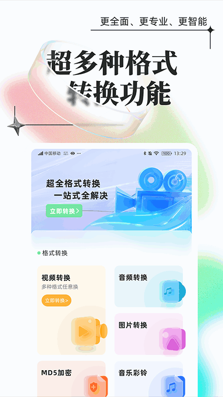 1. 支持音频、视频、图片、文档等哆種文件格式转换。