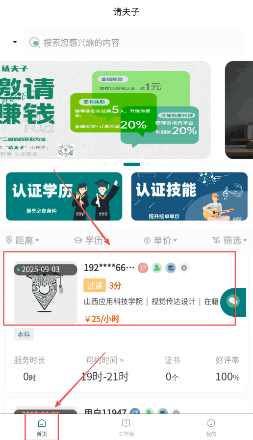 1、请夫子APP既能满足找教育学习的需求(qiu)又能在平台做兼职赚钱,是一个非常实用的多功能应用。