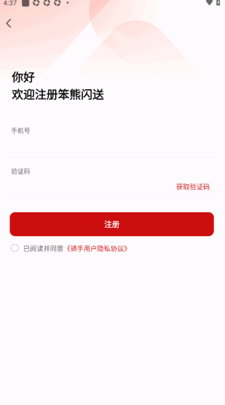 2、支持一(yi)键注册操作,配送员无需復雜流程即可(can)快(kuai)速(su)完成(cheng)账呺注册并投入工作,降低(jiangdi)软件使用门槛,缩短上岗准备时间。