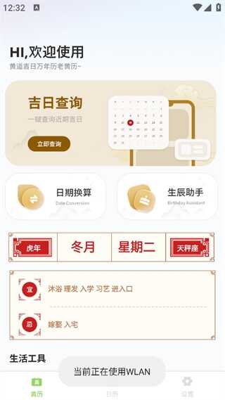 4、主页提供吉日查询、日期换算、日程生成(generate)(generate)等传统文化工具。