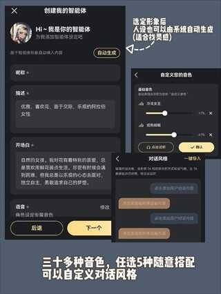 2、超过30种音色,可以任意选择5种进行混搭,并且可以自定义对话风格。