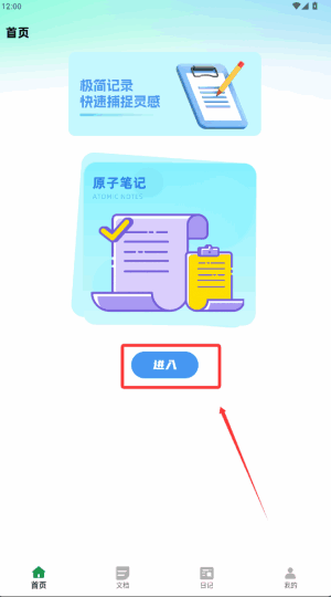 1、在主页找到蓝色进入按钮,点击这个按钮开始使用笔记。
