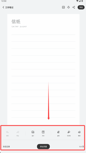 4、底部是添加(jia)页面等设(she)置,设(she)置好了,开始书写笔记。