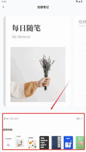 3、在创建新笔记页面点击请输入笔记名称,在这里输入笔记名称。