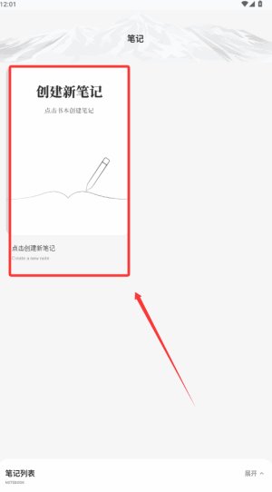 2、在页面找到创建新笔记,点击这个图标开始创建笔记。