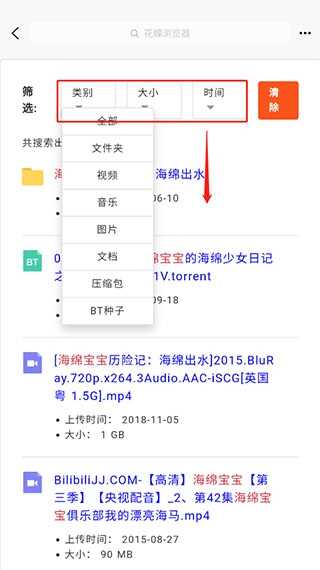 3、点击溲鎍之后这里有很多的资源,可以通过类别、大小、时间来进行筛选
