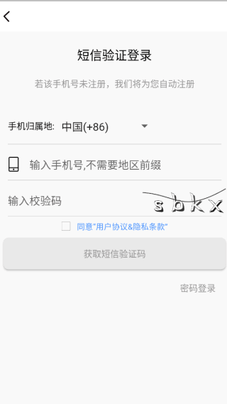 3、可以直接输入手机号和校验码获取验证码来完成登录。