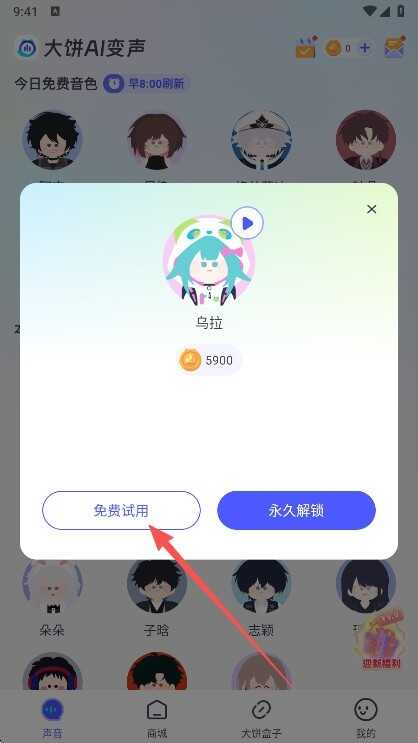 2、用户只(zhi)需(xu)点击(ji)喜欢的音色,然后点击(ji)免费试用
