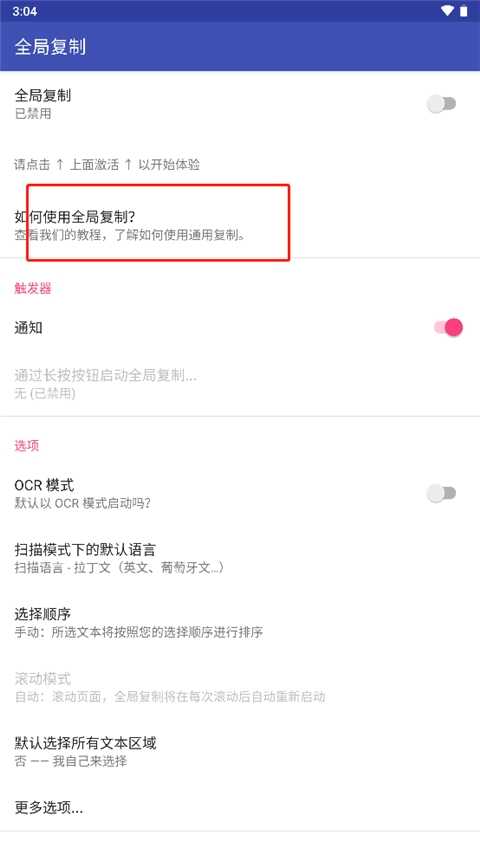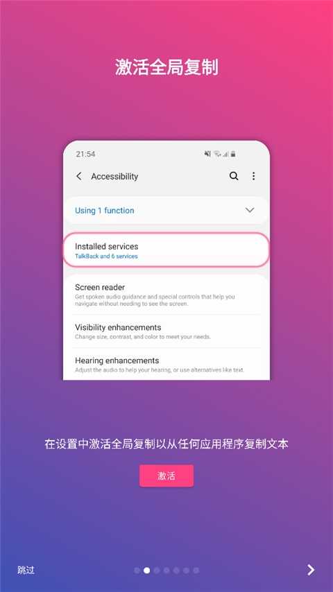 开启辅助服务激活全局复制(zhi)模式,轻松选择各种应用中你想复制(zhi)的文本。