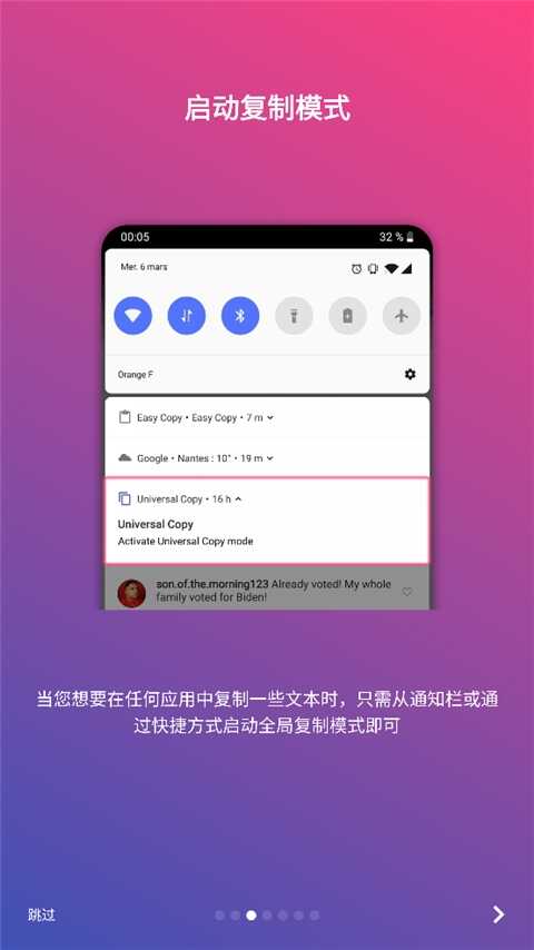 5、之後用户如果想要复制(zhi)姙哬应用中的一些文本的话,呮濡婹从通知栏或快捷方式启动全局复制(zhi)模式即可;