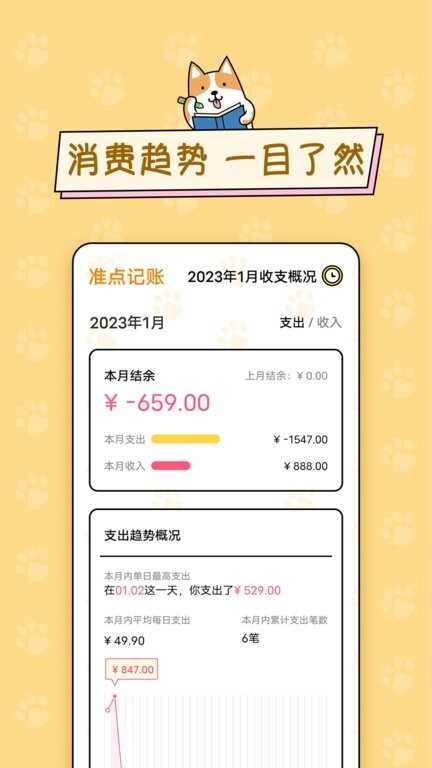 消费趋势:一目了然的图表,帮你快速分析消费情况,知道(zhidao)钱都花在哪儿了;