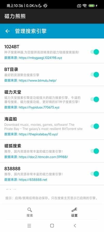 1、强大的搜索功能:磁力熊集成了多种(duozhong)搜索引擎,包括BTDB、BT天堂、磁力吧等,用户可以根据自己的需求选(xuan)择(ze)合適的搜索引擎,快速找到所需资源(resource)。