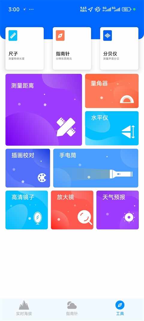 户外工具箱:包含(han)尺子,噪音检测仪,测量距离,水平仪等丰富功能;