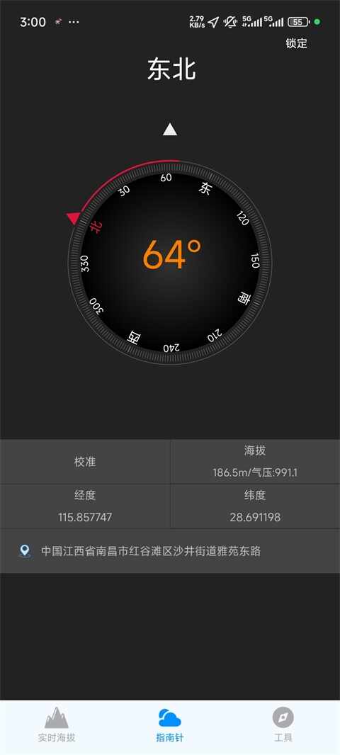 2、软件内置的指南针功能可以让你清楚的知道东南西北这样就不会迷路了